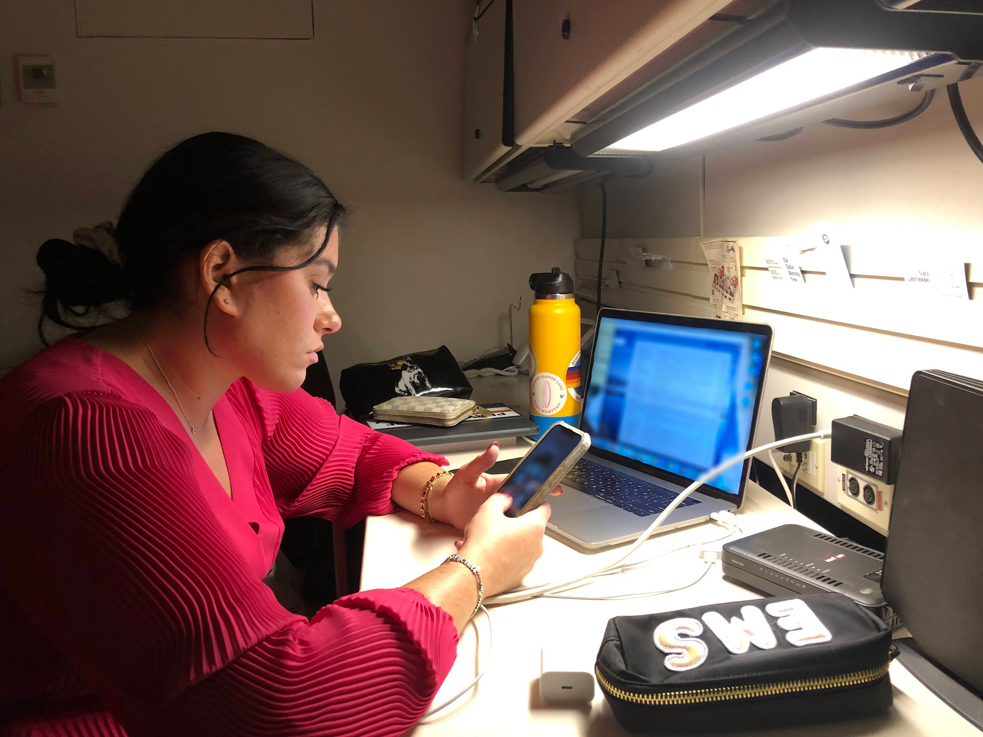 Chief White House Correspondent Emily Barkann works at her desk in the West Wing of the White House (Andrew McKeough/AKSM Photography).