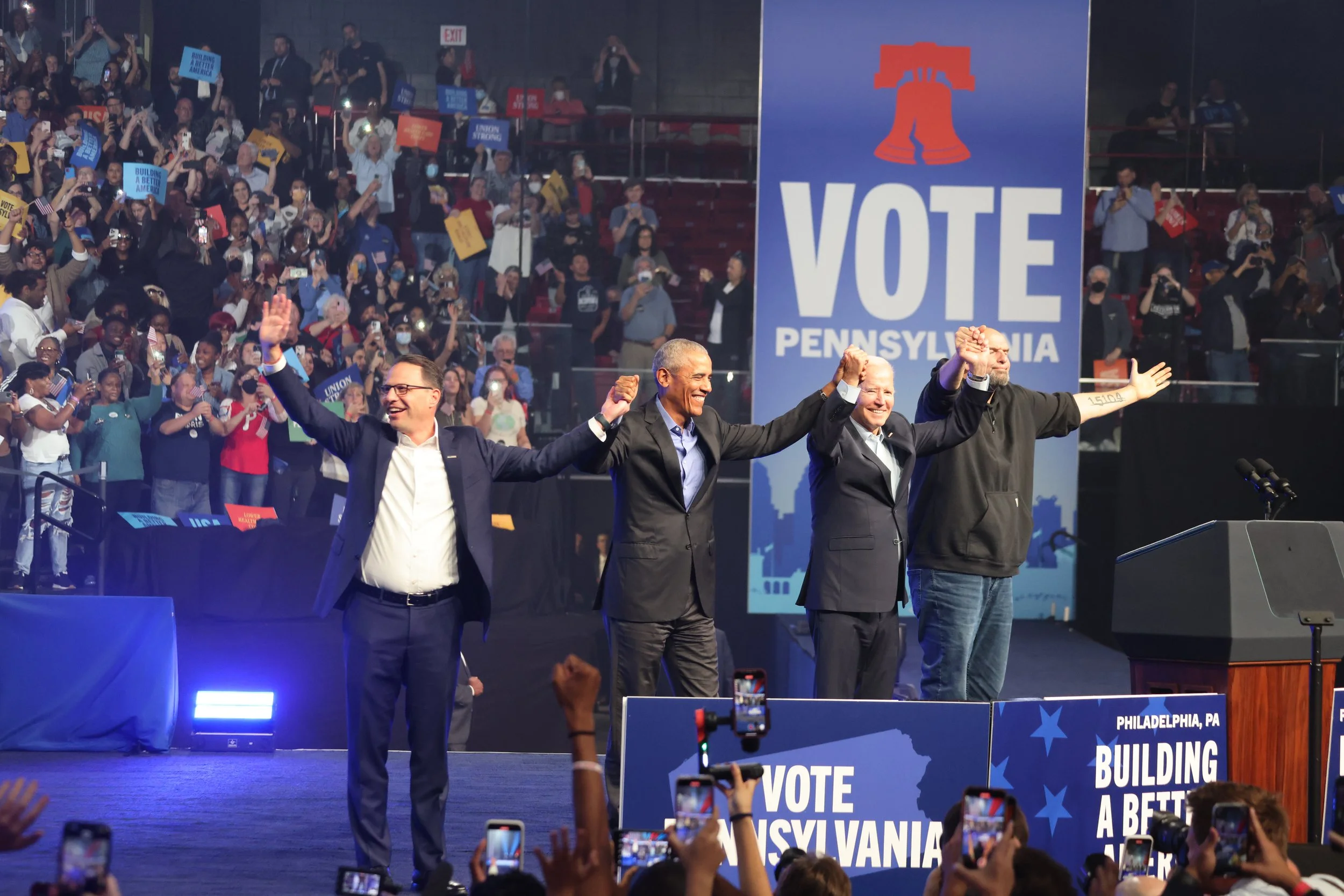 Joining President Biden at Temple University was former president Barack Obama, Senate candidate John Fetterman, and Gubernatorial candidate Josh Shapiro.
