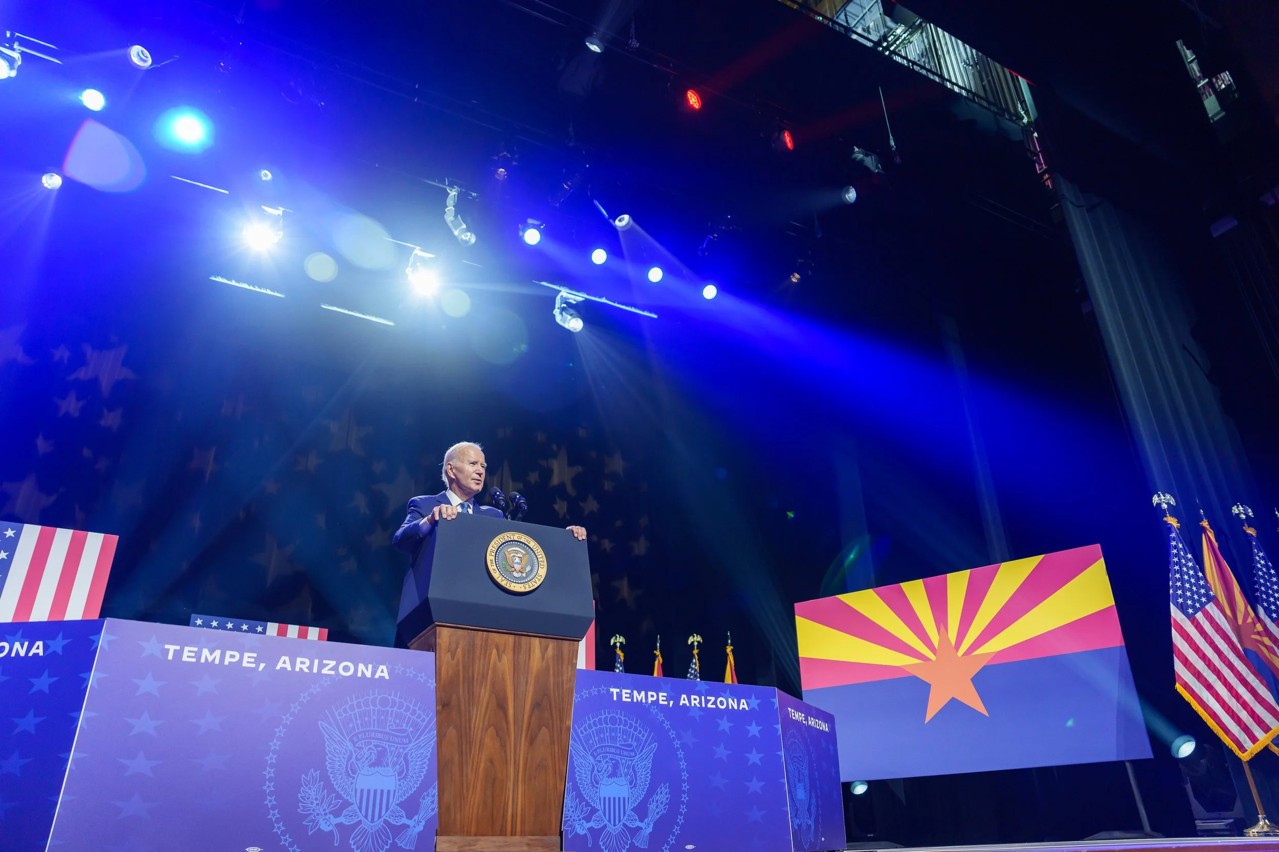 President Joe Biden delivers remarks honoring the legacy of late Arizona Senator John McCain and the importance of strengthening our democracy, Thursday, September 28, 2023, at the Tempe Center for the Arts in Tempe, Arizona. He announces his plan to devote federal funding to create a museum and library in McCain’s honor (Official White House Photo by Cameron Smith).