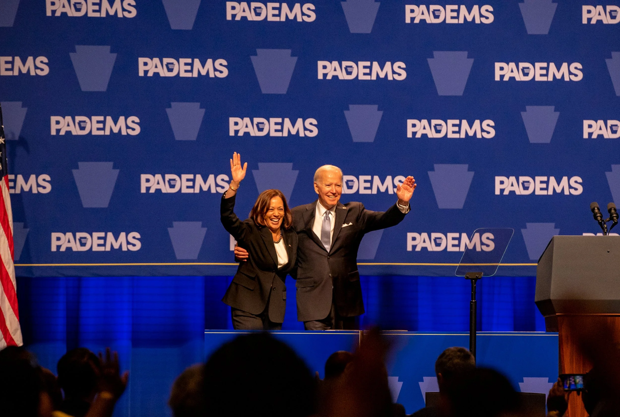 President Joe Biden and Vice President Kamala Harris receive a standing ovation after delivering remarks at the third annual Independence Dinner in Philadelphia on Friday, October 28th (Olivia Pasquale/AKSM Photography).