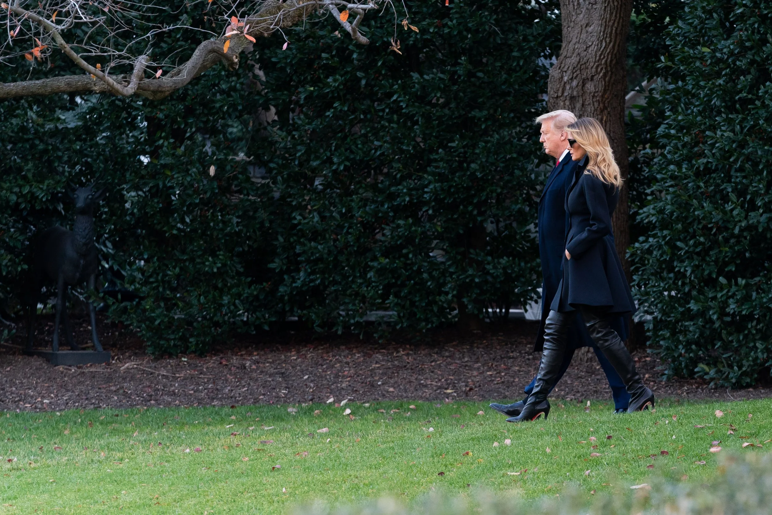 Former-President Trump and Melania Trump walk across the South Lawn of the White House on Wednesday, Dec. 23, 2020, before boarding Marine One to begin their trip to Florida (Archived Trump White House Photo by Andrea Hanks).