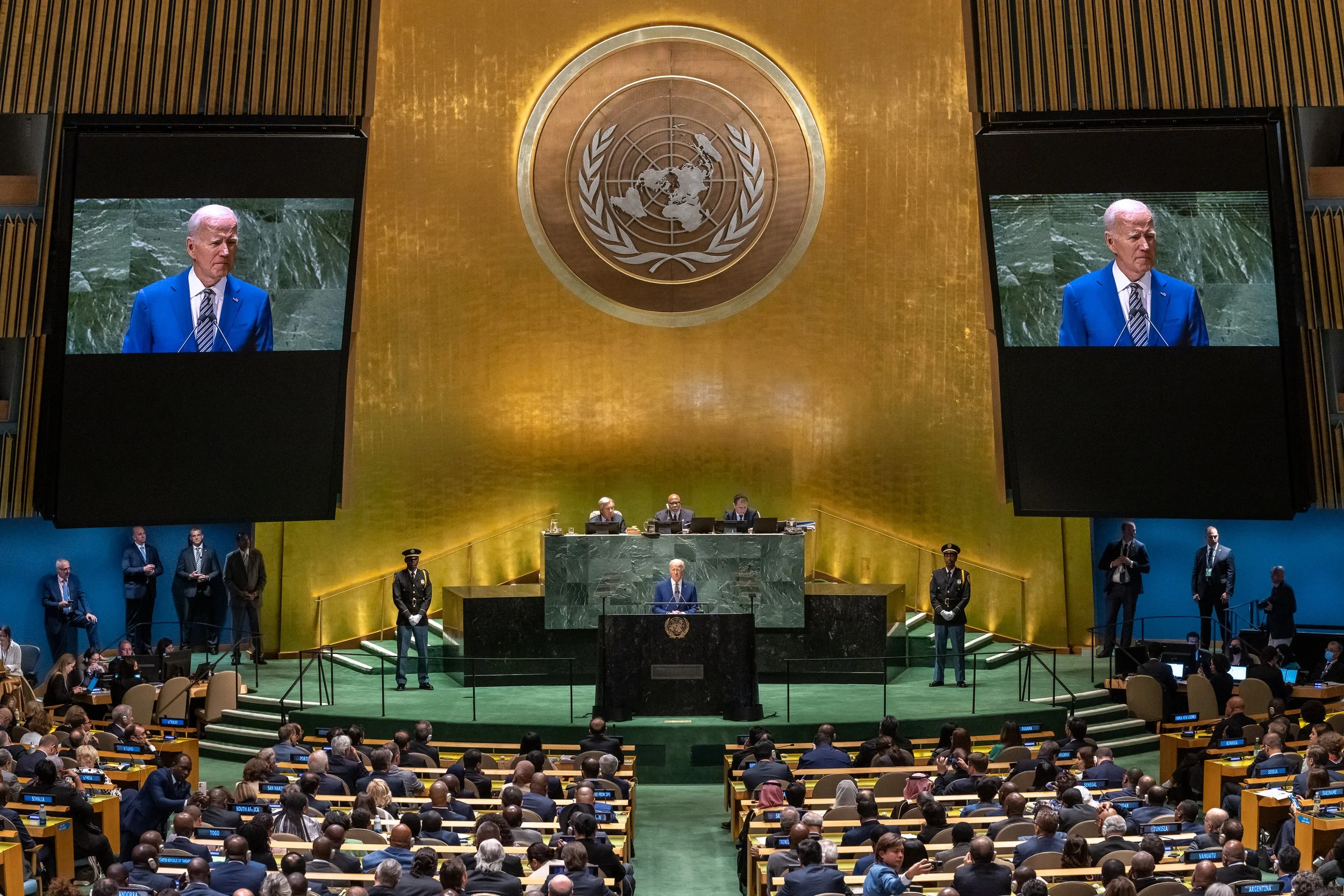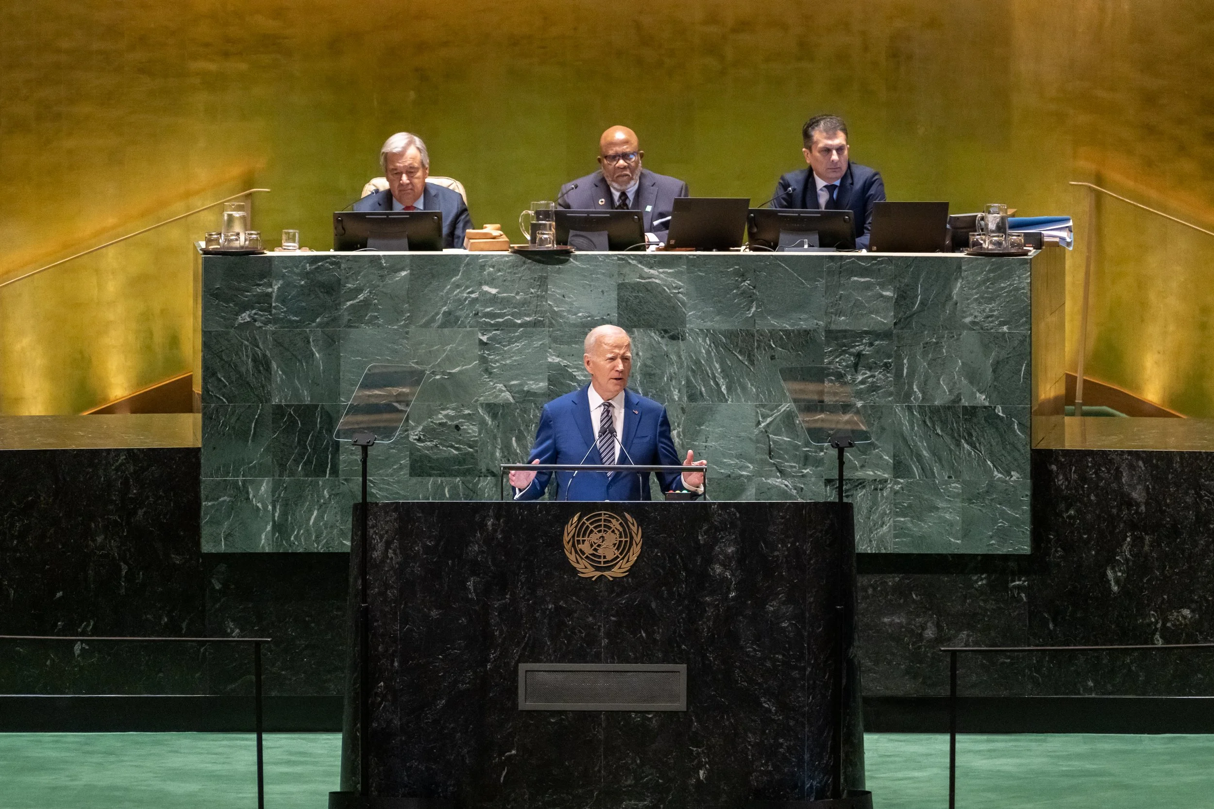President Joe Biden addresses the 78th session of the United Nations General Assembly, Tuesday, September 19, 2023 at U.N. Headquarters in New York City, New York (Official White House Photo by Cameron Smith).